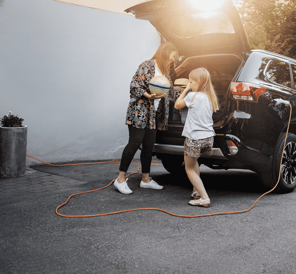Mit Ihrem E-Auto starten Sie umweltfreundlich durch: an Ihrer E-Ladestation tanken Sie 100 % Ökostrom.